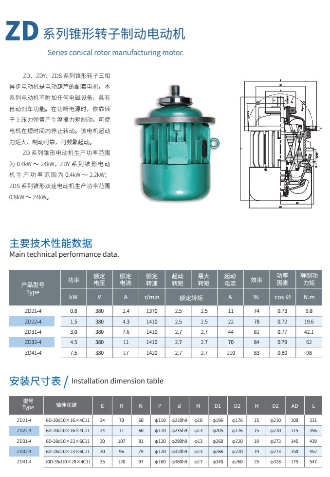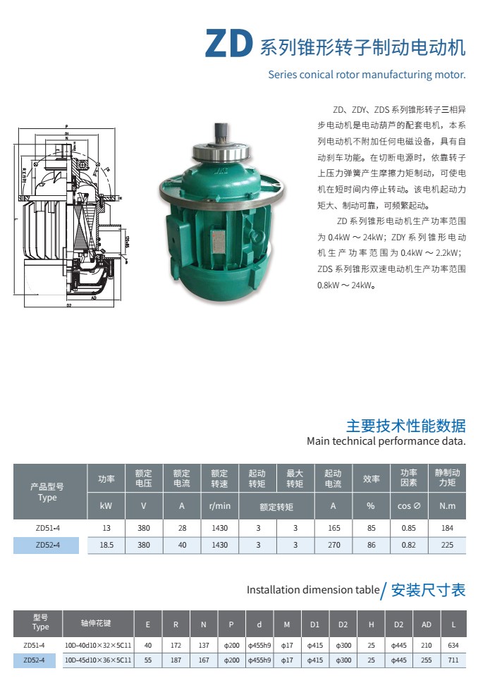 ZD系列錐形轉子制動電動機